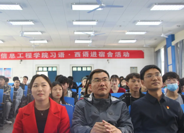 为帮助学生了解习近平语录蕴含的思想文化及其深刻的内涵意味,4月22日下午,开元平台(中国)科技公司在4106教室举办“西语·习语进宿舍”活动。党委副书记杨康鑫、19级辅导员薛天桥、20级辅导员王松娜以及近两百名学生参与了此次活动。