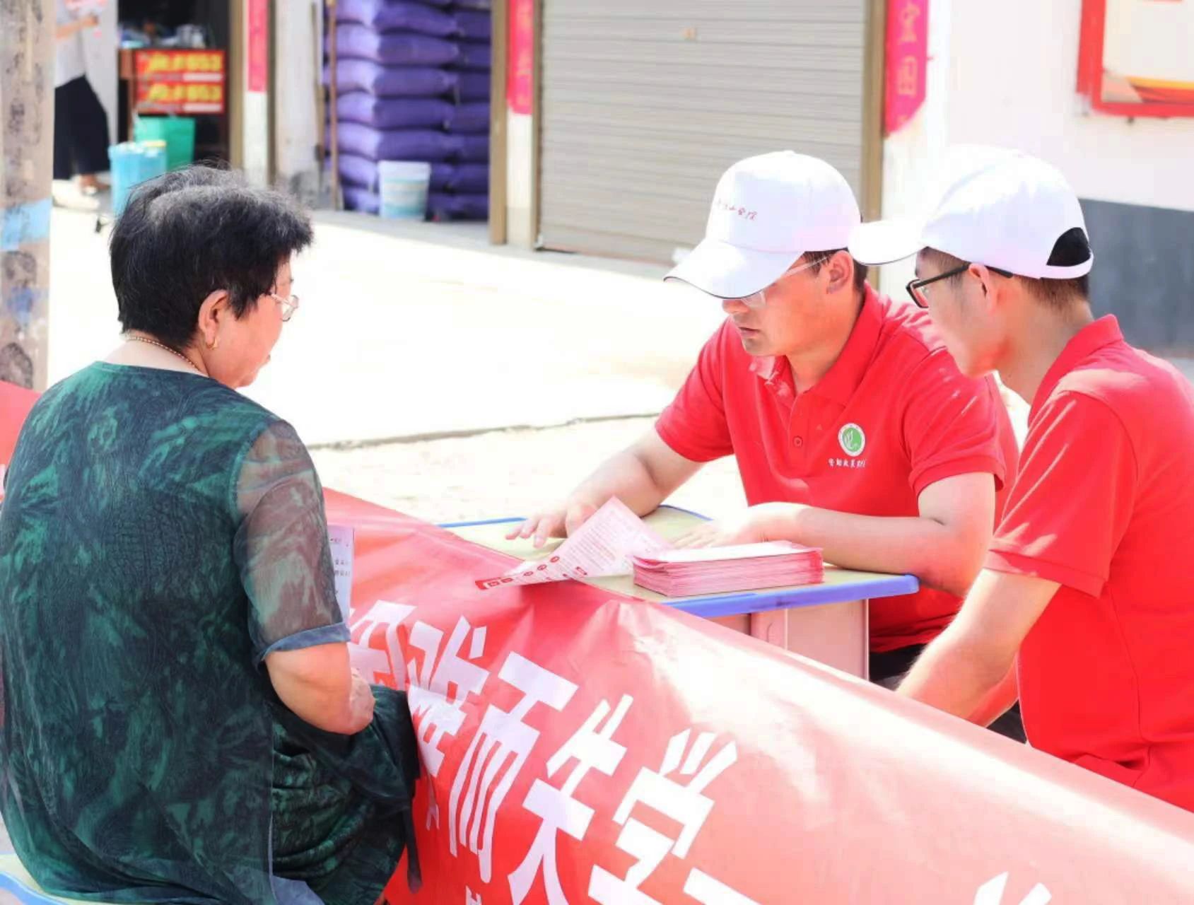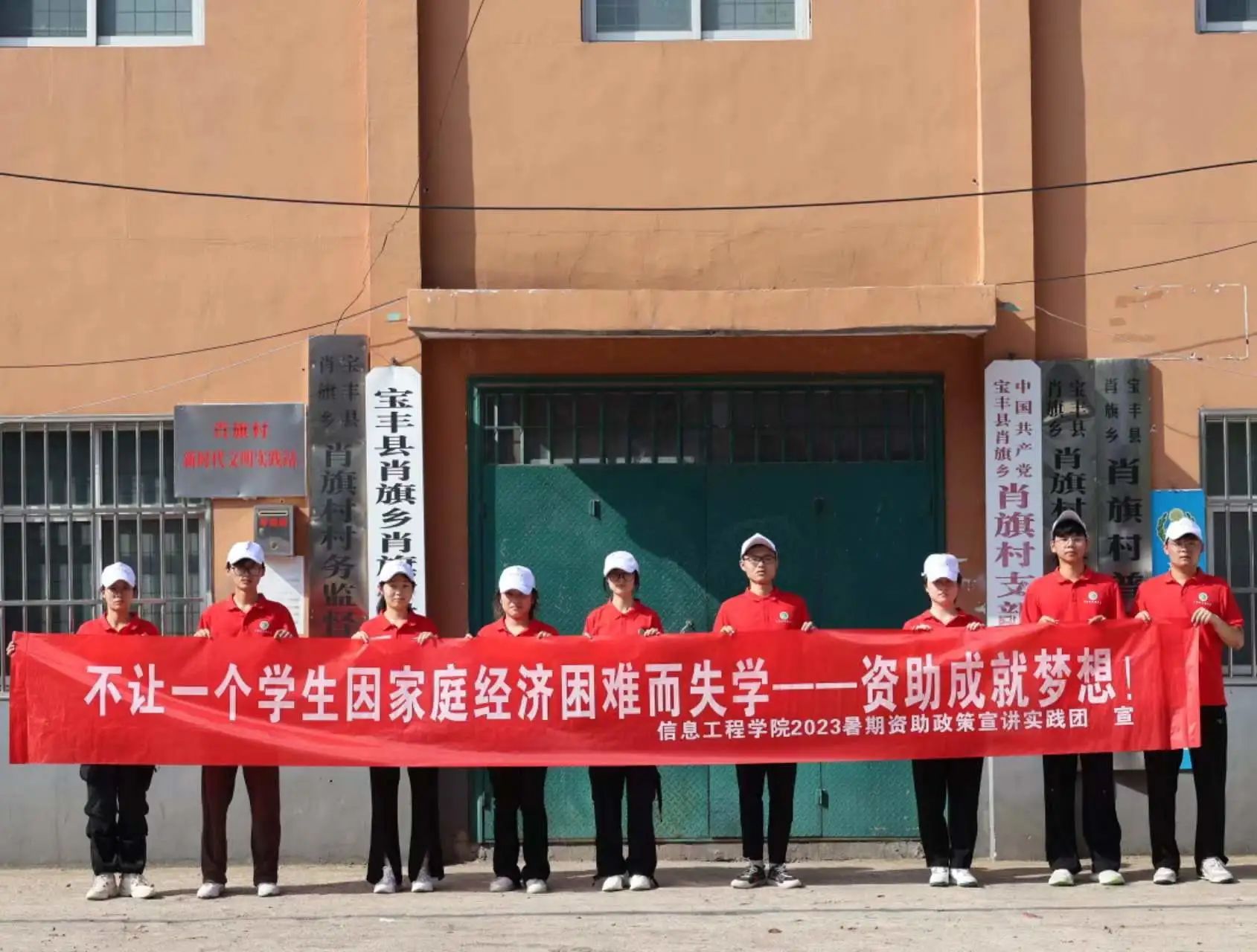 实践团志愿者们在肖旗乡肖旗村搭建资助展台为过往村民进行国家资助政策的讲解,还有部分志愿者拿上资助明白卡,到肖旗村与白庄村等村民家中进行上门宣讲。