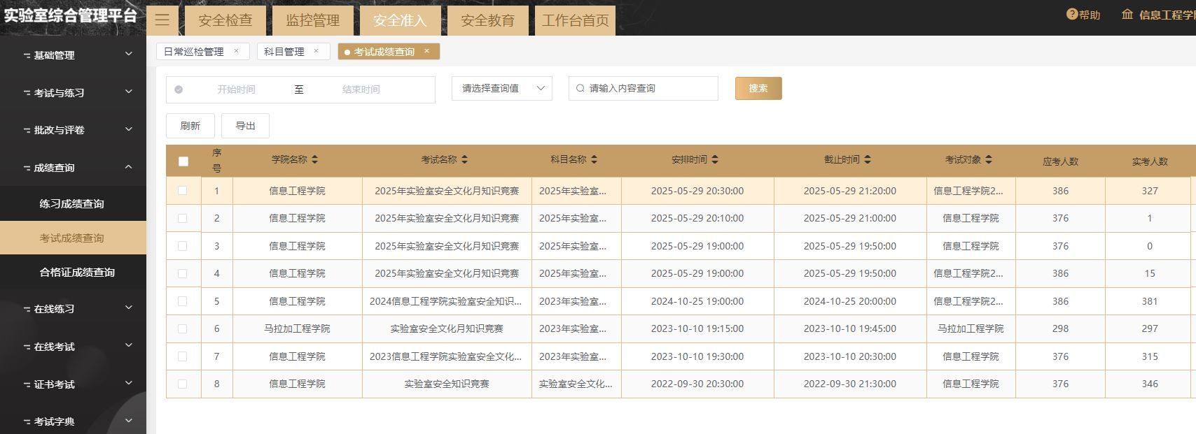 为积极响应国家对于校园安全建设的号召,切实加强我院实验室安全管理,根据《关于开展2025年实验室安全文化月活动的通知》和《平顶山学院2025年实验室安全知识竞赛活动方案》要求,2025年5月29日晚20:30-21:20,我院组织2024级新生和往届生以在线答题的形式,开展实验室安全知识竞赛院级初赛活动。大家通过手机踊跃参赛答题;考试结束后,我院实验中心选择表现优秀学生参加校级实验室安全知识竞赛决赛。